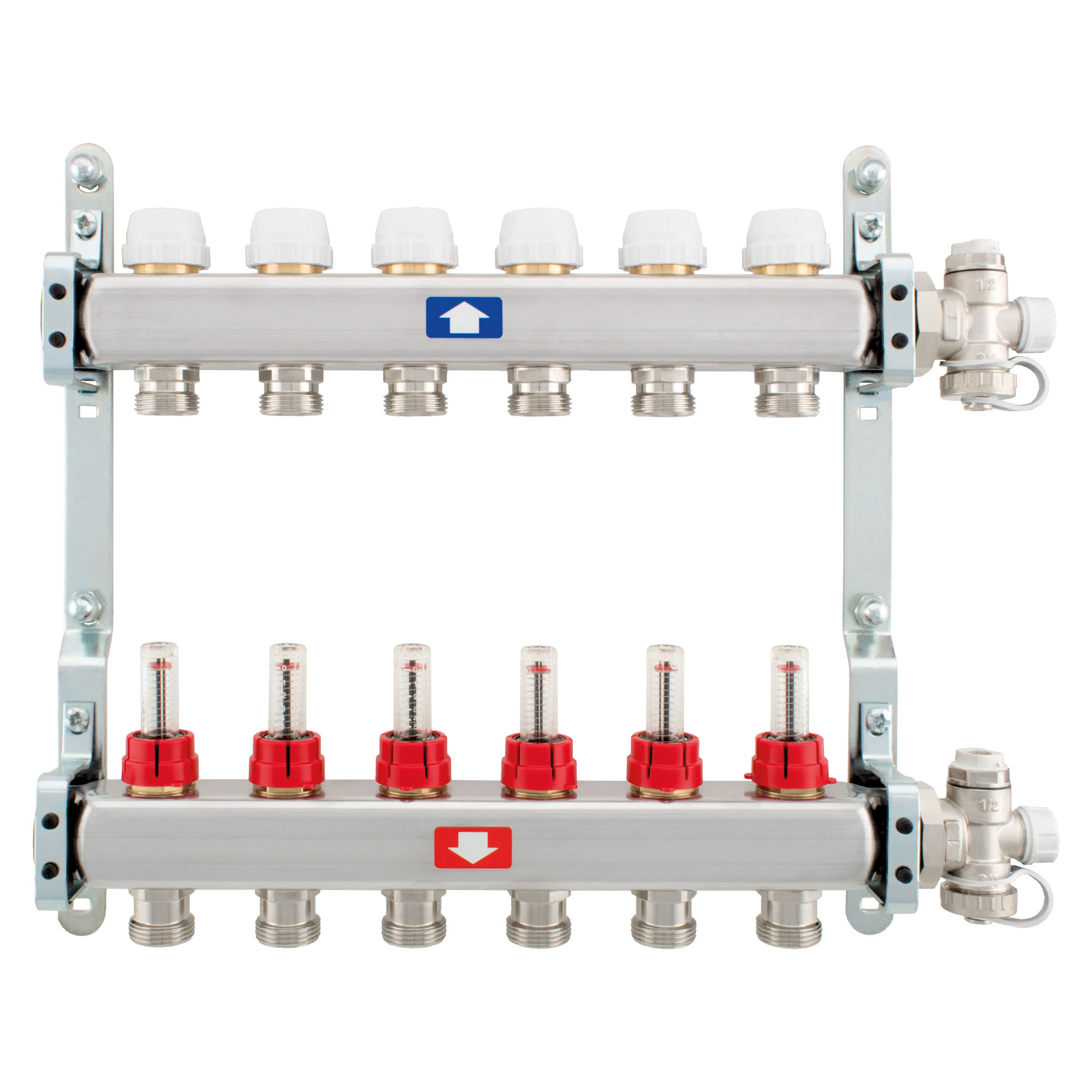 – 1 Vorlaufverteiler aus Edelstahl AISI 304L mit Durchflussmessern