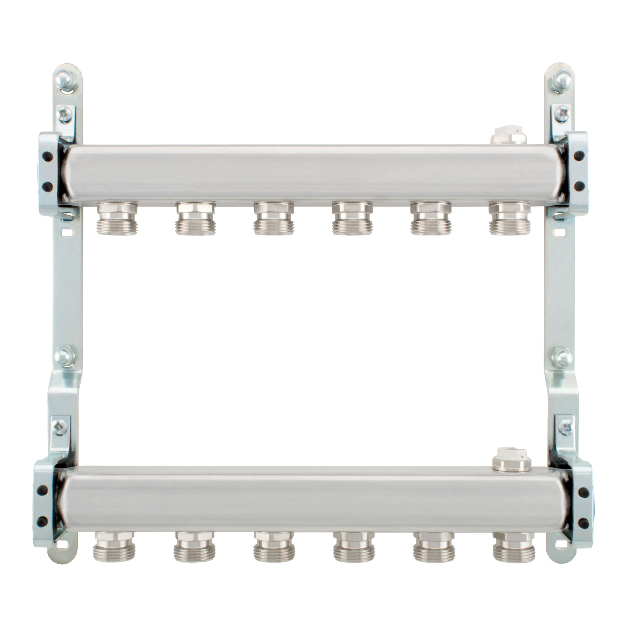 – 1 Vorlaufverteiler aus Edelstahl AISI 304L mit Entlüftungsventil