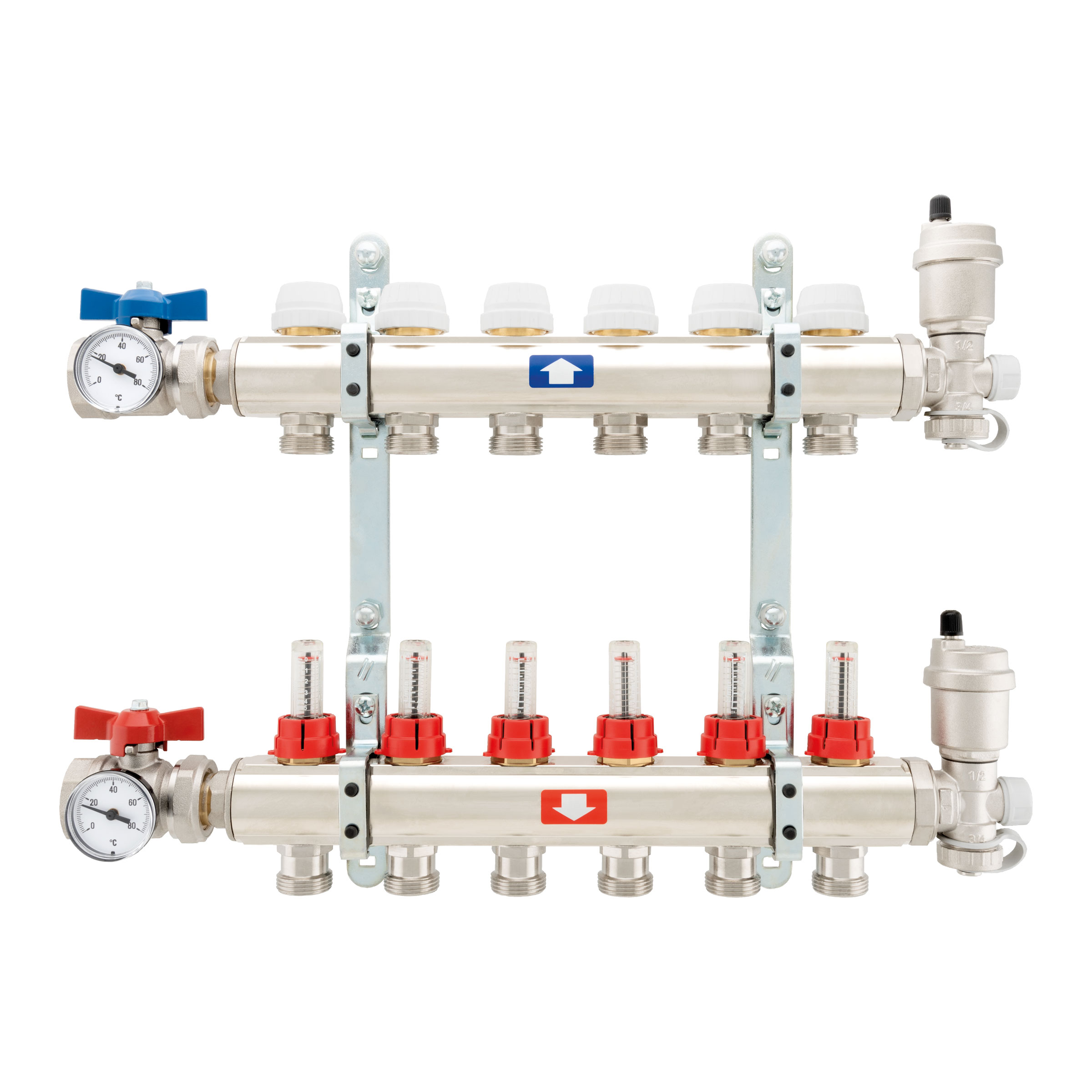 – 1 Vorlaufverteiler aus Messing mit Durchflussmessern