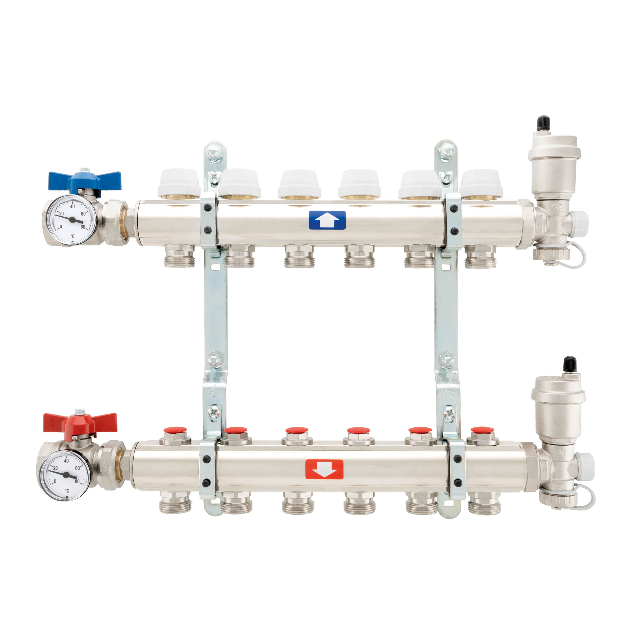 – 1 Vorlaufverteiler aus Messing mit Rücklaufverschraubungen