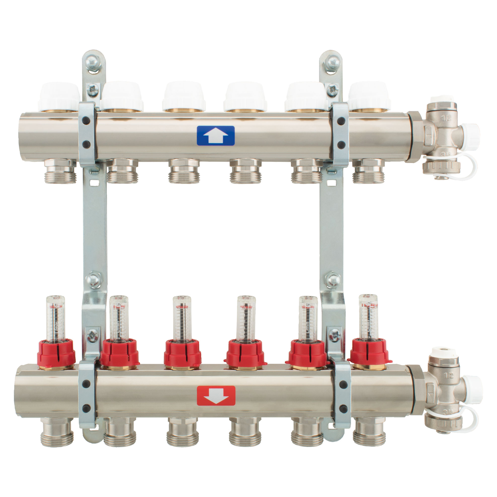 – 1 flow manifold in nickel-plated brass with flow meters