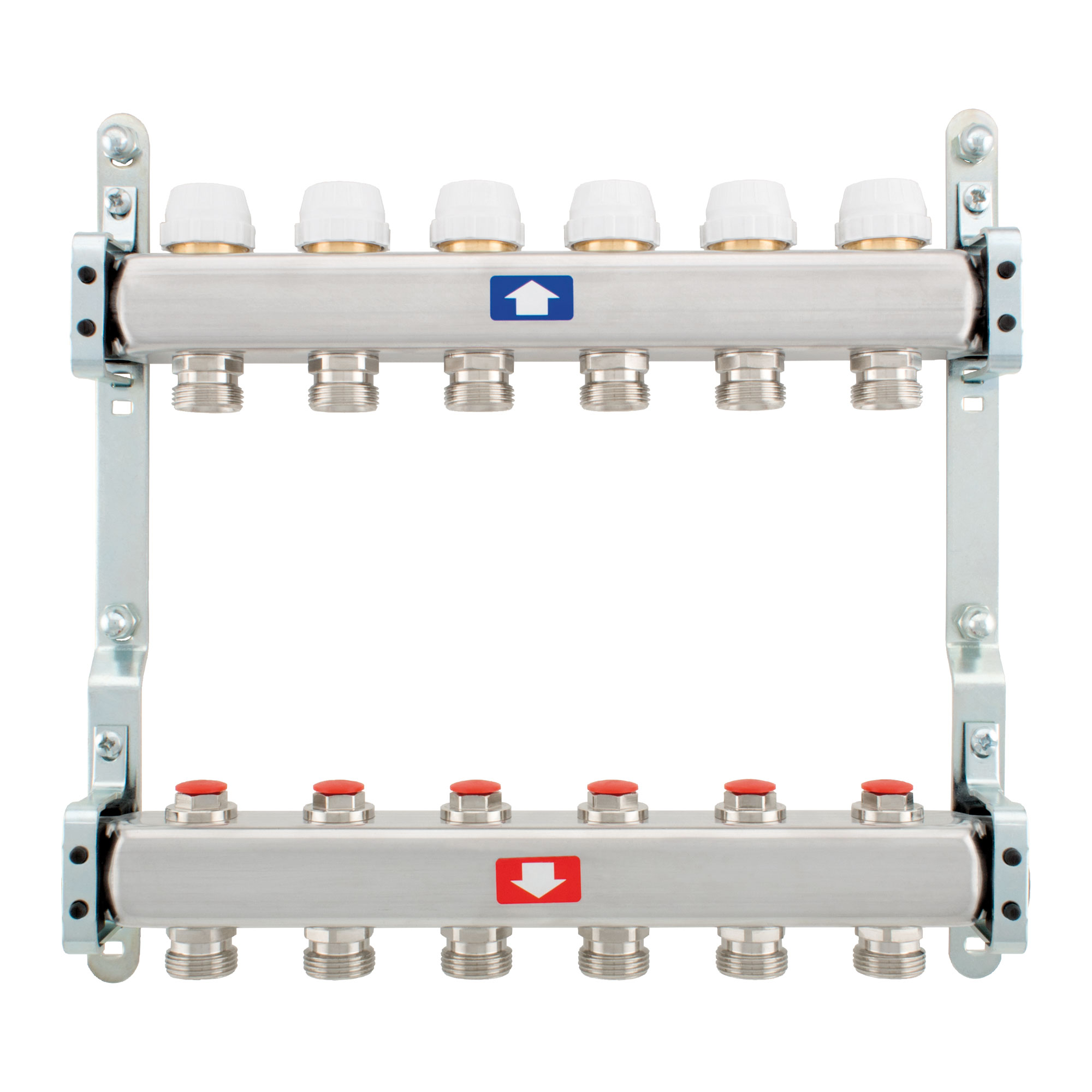 – 1 flow manifold in stainless steel AISI 304L with lockshields