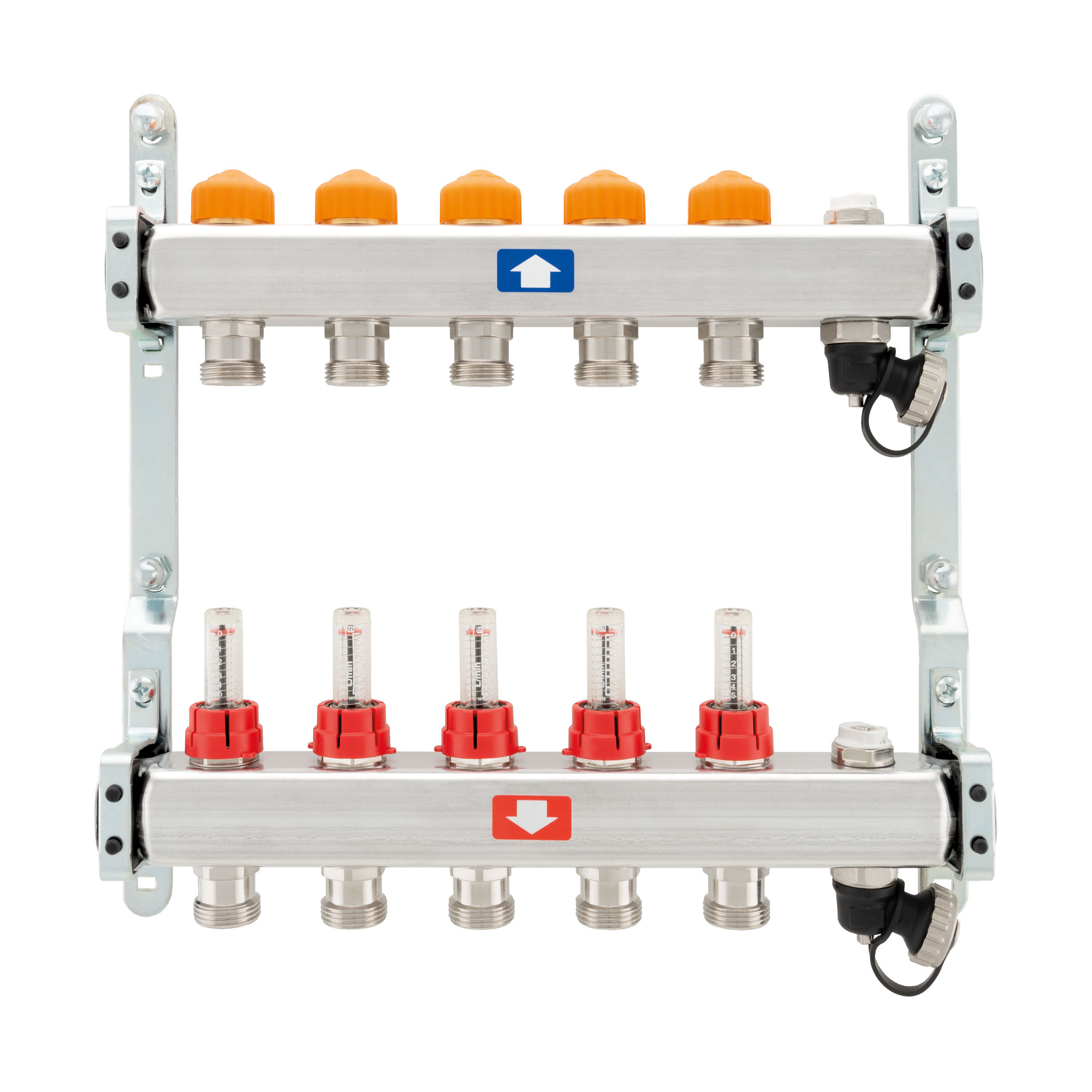 Colector premontado, con caudalímetros, descarga y purga - Control de flujo automático