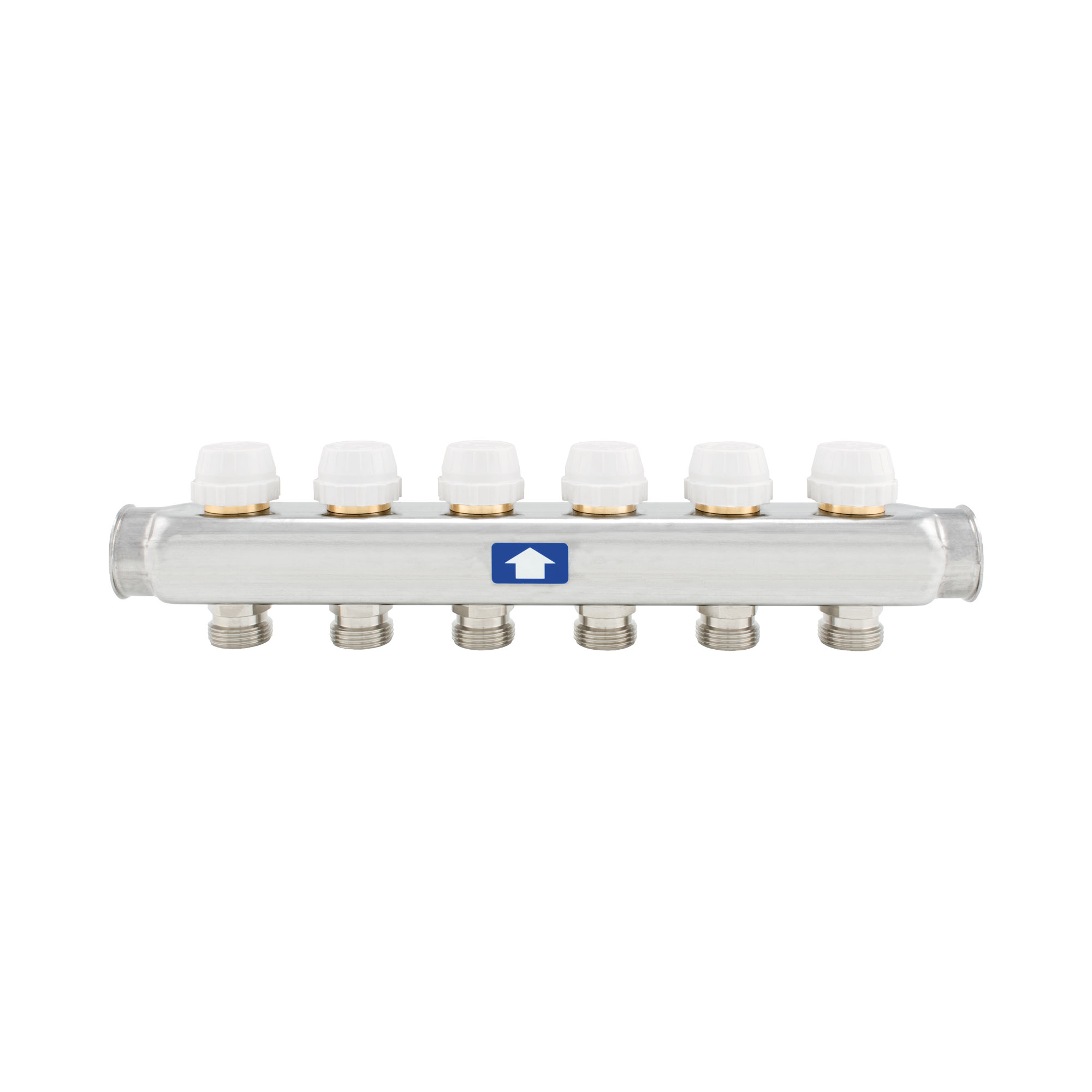 Коллектор с отсечными клапанами под электротермо приводы с колпачками